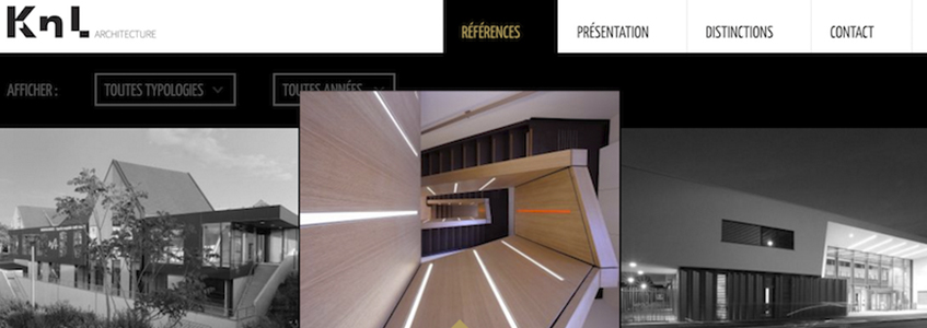 Basé en France en Alsace, KNL est un bureau d’architectes. Ici, vous allez découvrir une nouvelle source d’inspiration : la sobriété. Elle se traduit par des photos en noir et blanc qui se colorent et révèlent les informations au passage de la souris. Cette tendance épurée est de plus en plus courante : l’internaute ne veut plus de sites surchargés, il recherche la clarté et la précision, un point essentiel à garder à l’esprit !